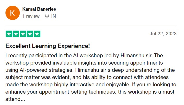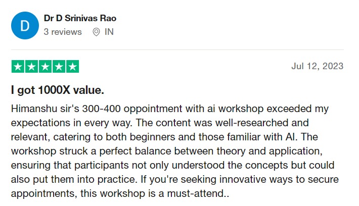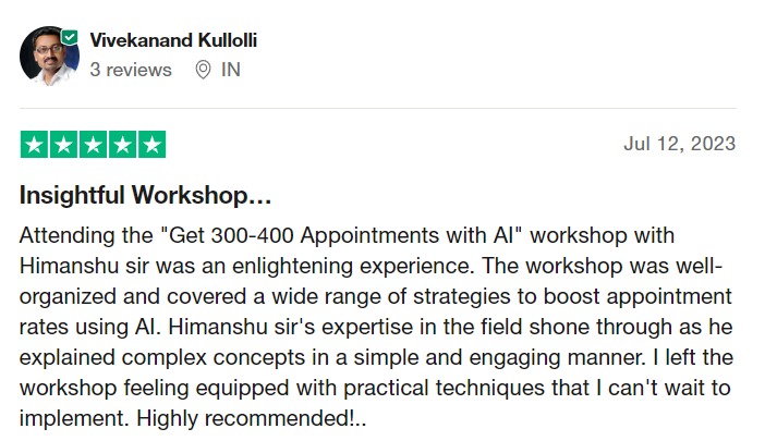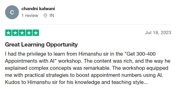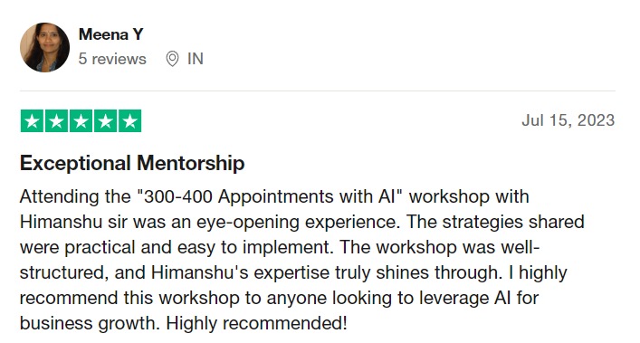 It is a completely LIVE hands-on Workshop conducted by Mr. Himanshu Agrawal who will practically show how to use FREE AI tools to build an automated system funnel that brings you high-quality appointments consistently.